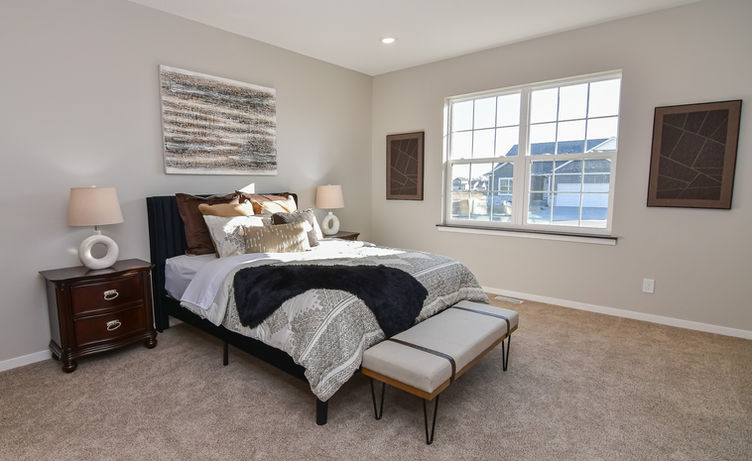 On the main floor, the primary suite was styled as a true retreat, emphasizing comfort, calm, and subtle luxury to mirror the spa-like feel of the ensuite bath and oversized walk-in closet.